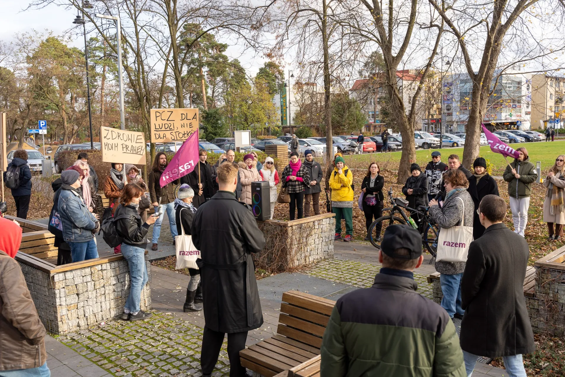 Protest został zorganizowany przez oddział Partii Razem "Mazowsze", a jego hasłem przewodnim było "SOS DLA PCZ!"